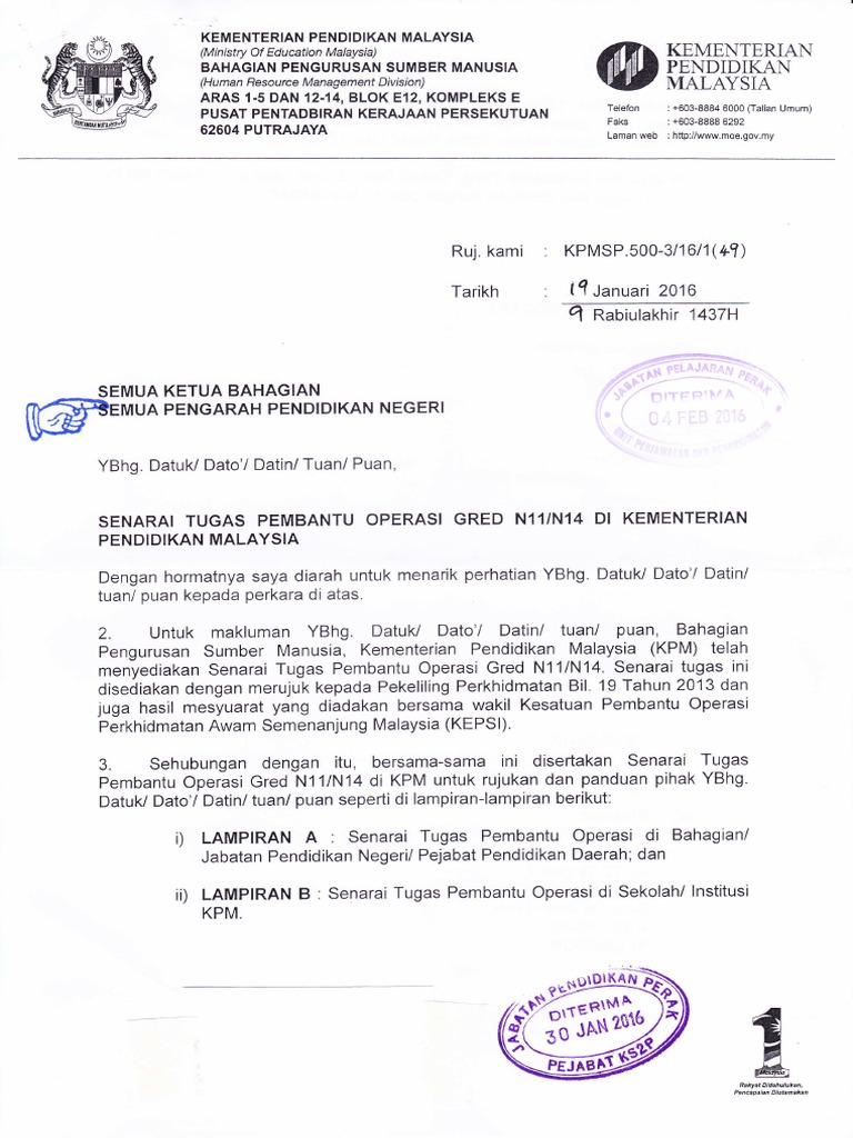Senarai Tugas Pembantu Operasi Gred N11 N14 Di Kpm Pdf